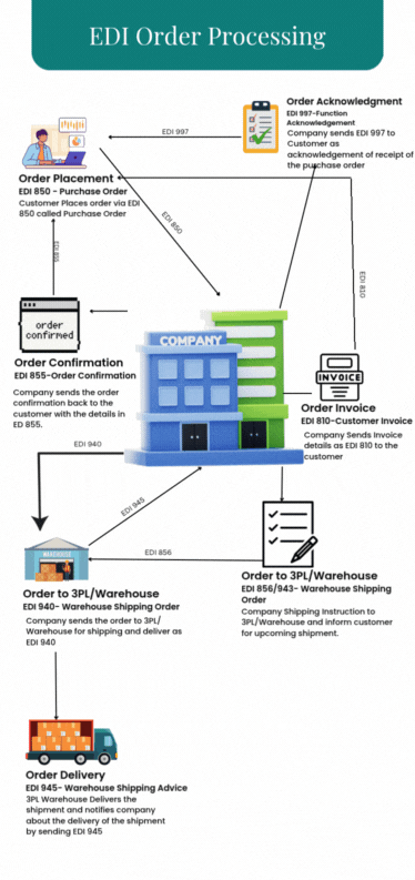 The Infographics represent a high level description of Processing of EDI from receiving Purchase order till order get invoiced.